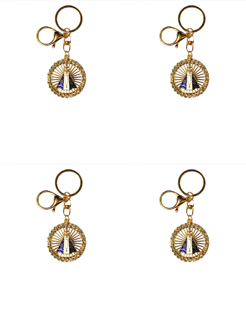 4 CHAVEIROS MOSQUETÃO DOURADO CÍRCULO APARECIDA STRASS santa