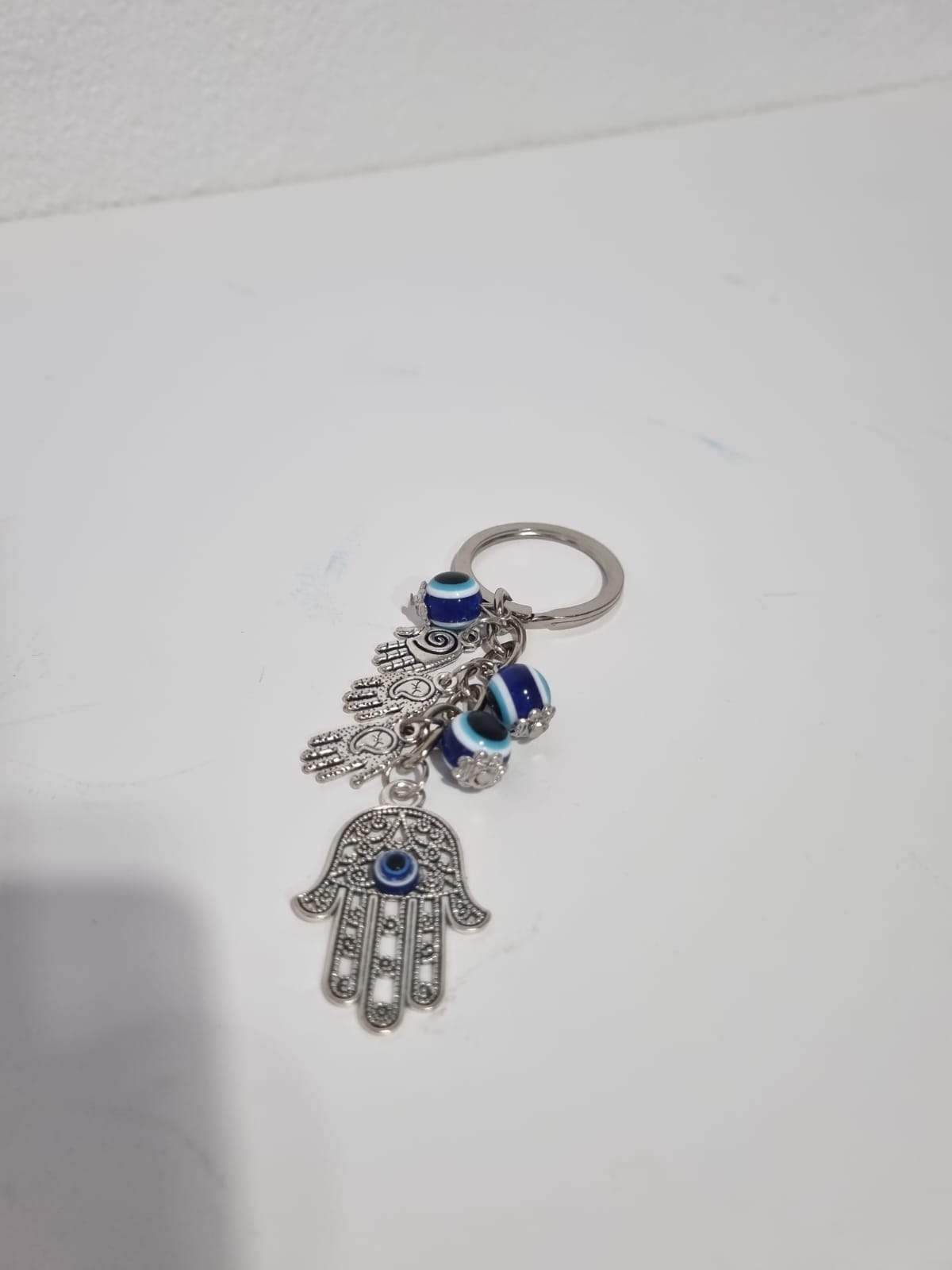 Chaveiro mão Hamsa Olho Grego amuleto 12 cm proteção inveja
