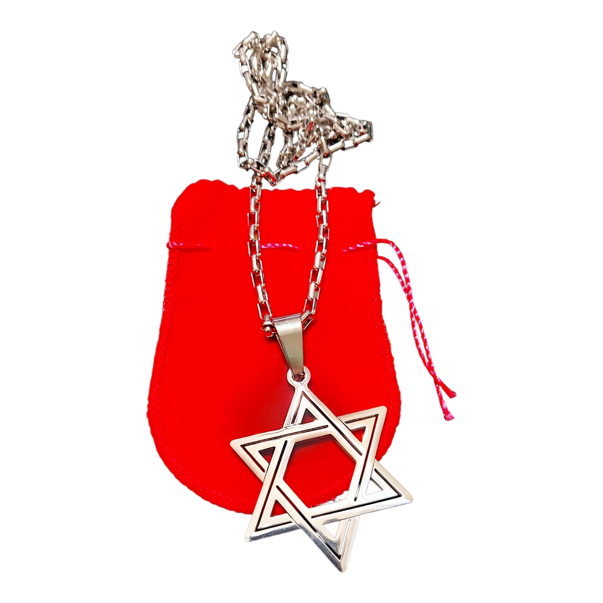 Este pingente de aço inoxidável prateado, no tamanho grande,simboliza a Estrela de Davi, ideal para expressar crenças culturais eespirituais.