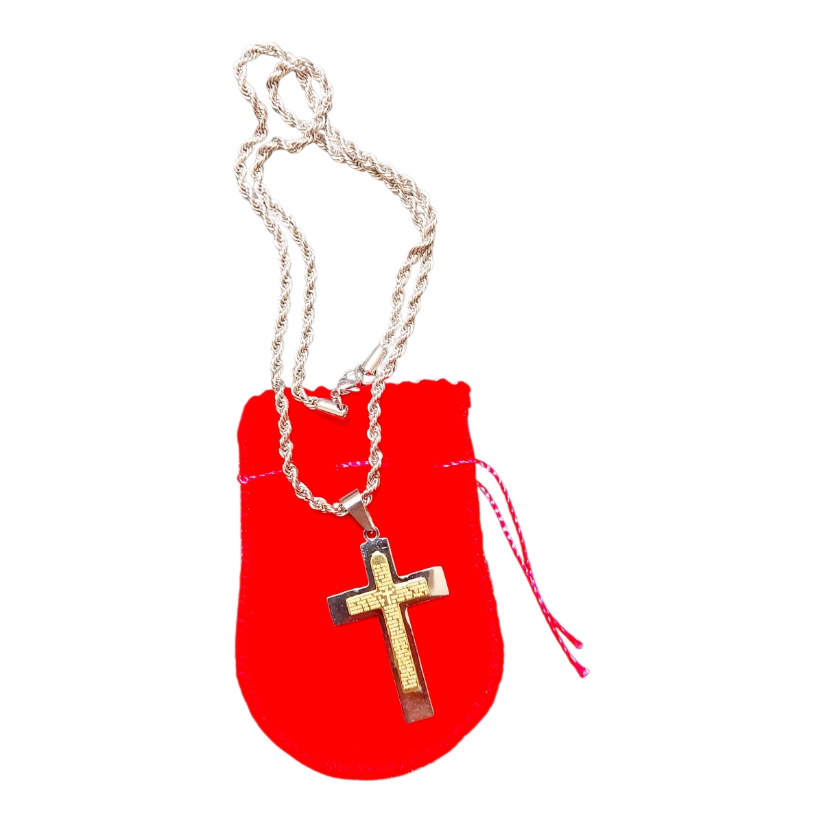 COLAR CORRENTE BAIANO AÇO INOX TRANÇADA crucifixo ORAÇÃO