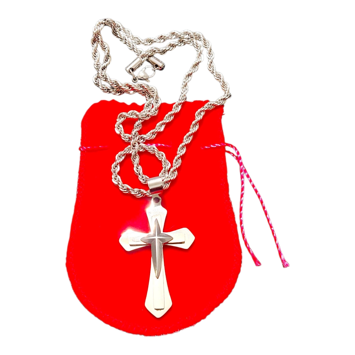 COLAR CORRENTE CORDÃO BAIANO AÇO INOX TRANÇADA CRUZ RELEVO