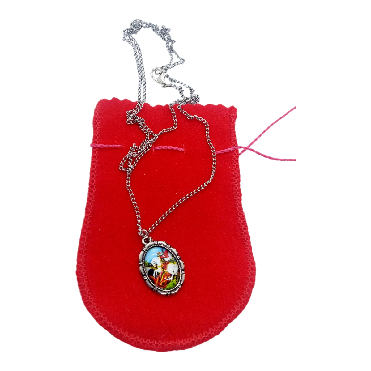 colar CORRENTE INOX MEDALHA RESINADA são jorge guerreiro