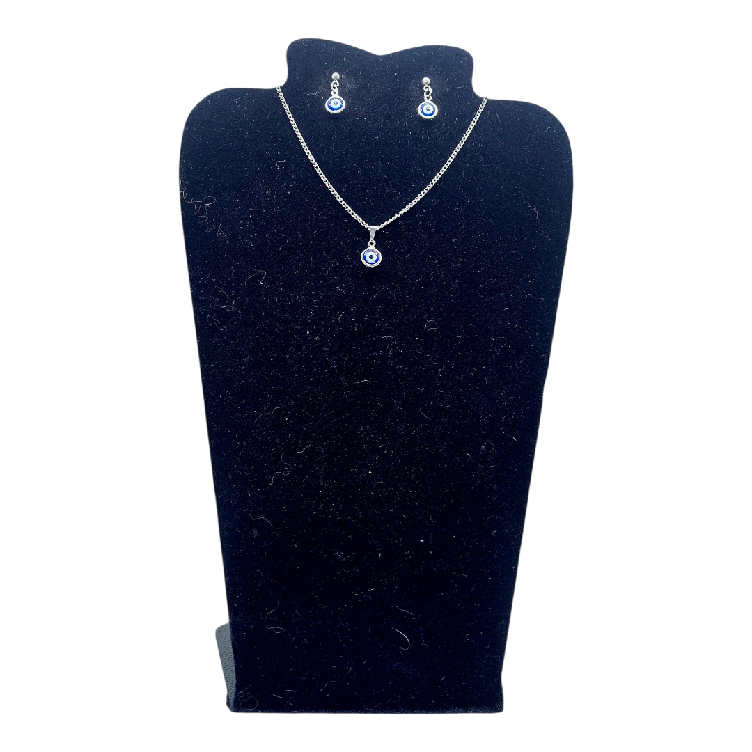 Olho Grego Azul Escuro – Conjunto Colar e Brincos Aço