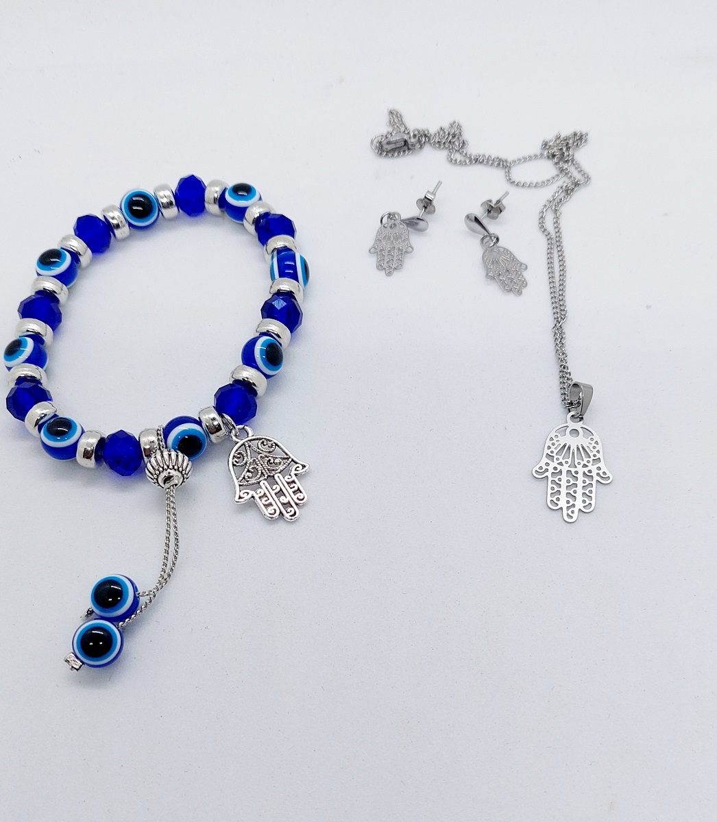 Conjunto FEMININO Colar Brinco PULSEIRA Mão de Fátima Hamsa
