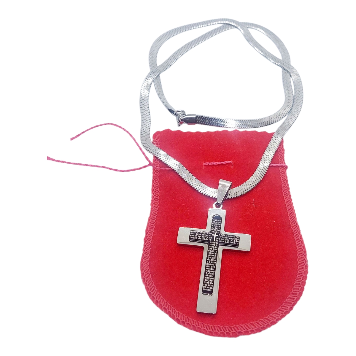 Corrente colar Aço Inox Snake Serpente CRUZ RELEVO PRETO