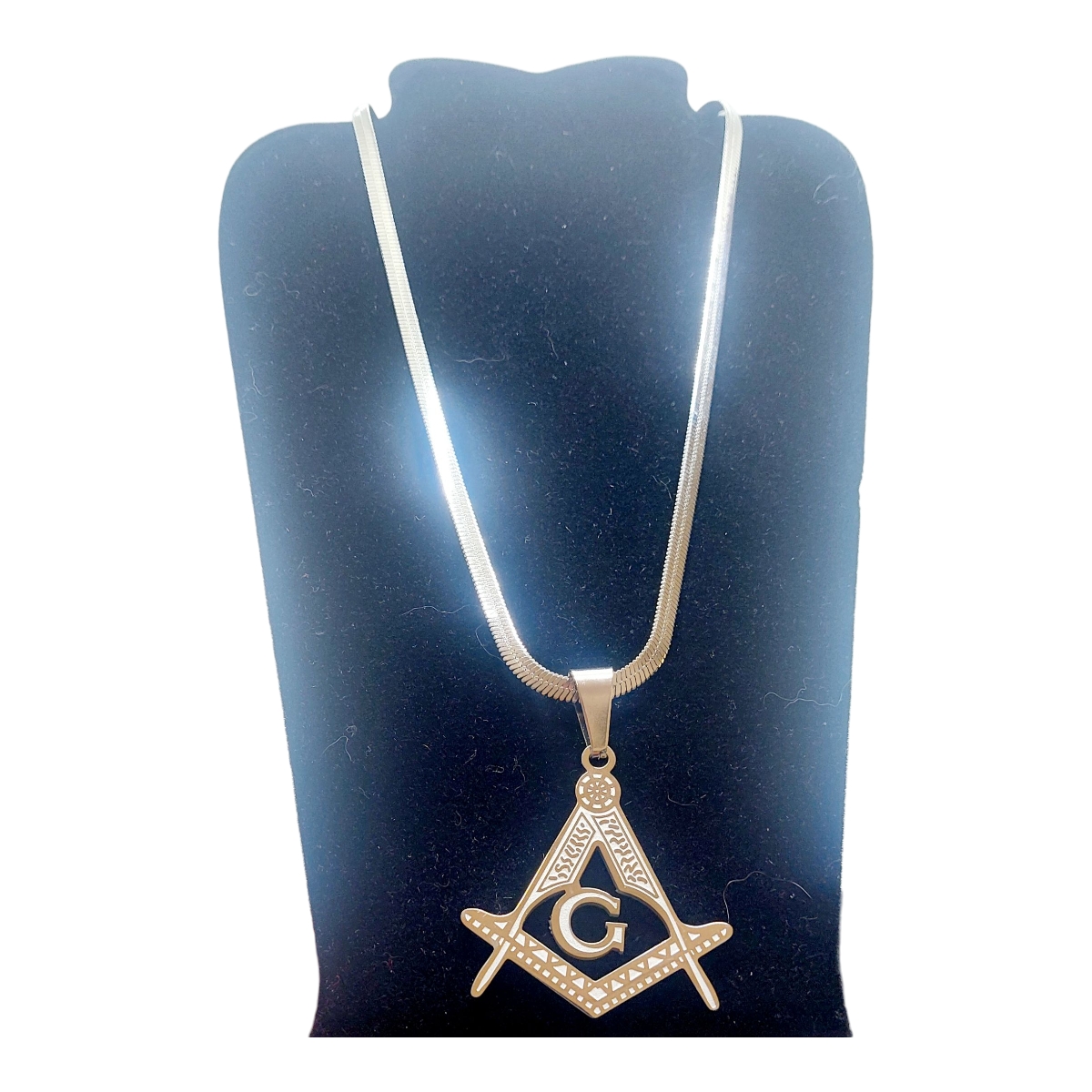 Este grande pingente prateado em aço inoxidável com o