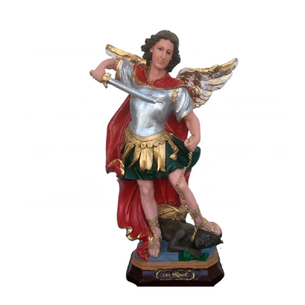 São Miguel Arcanjo, defendei-nos no combate, sede nosso refúgio contra a maldade e as ciladas do demônio. Ordene-lhe Deus, instantemente o pedimos, e vós príncipe da milícia celeste, pelo Divino Poder, precipitai no inferno a Satanás e a todos os espíritos malignos, que andam pelo mundo para perder as almas. Amém.