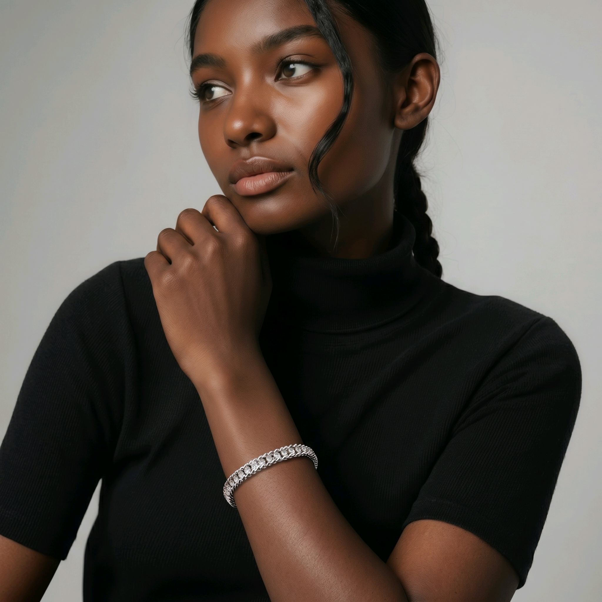 Pulseira Aço Inox LUXO Lacraia ZIRCONIA Riviera PRATA