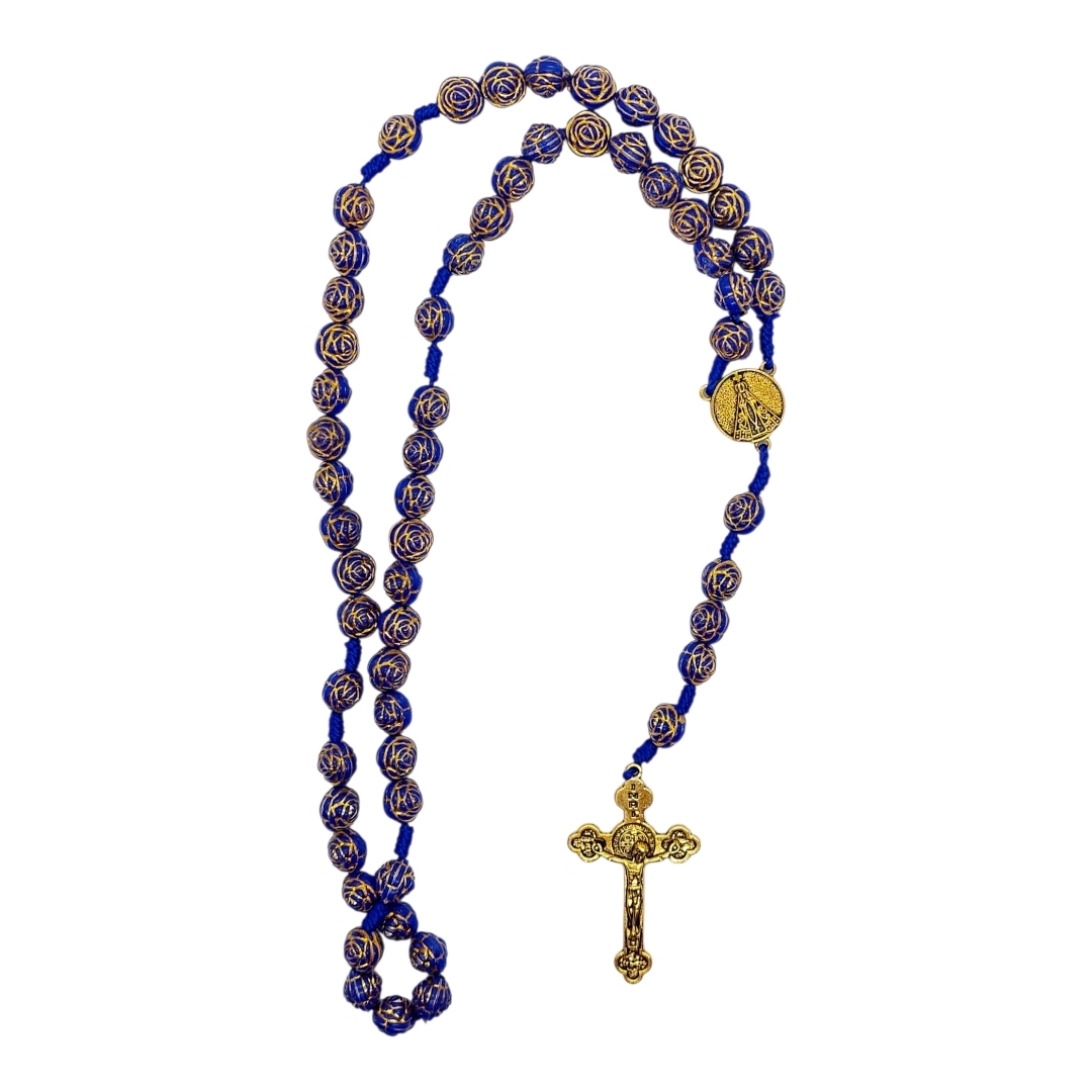 Terço FLORZINHA Nossa Senhora Aparecida contas 10 mm AZUL