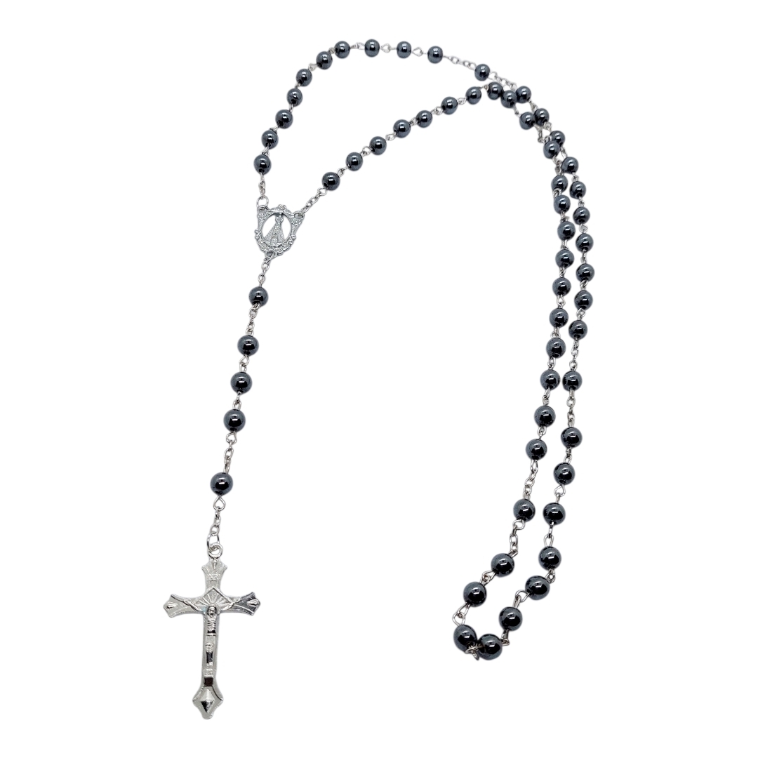 Terço hematita Medalha DE nossa senhora aparecida CONTA 6MM